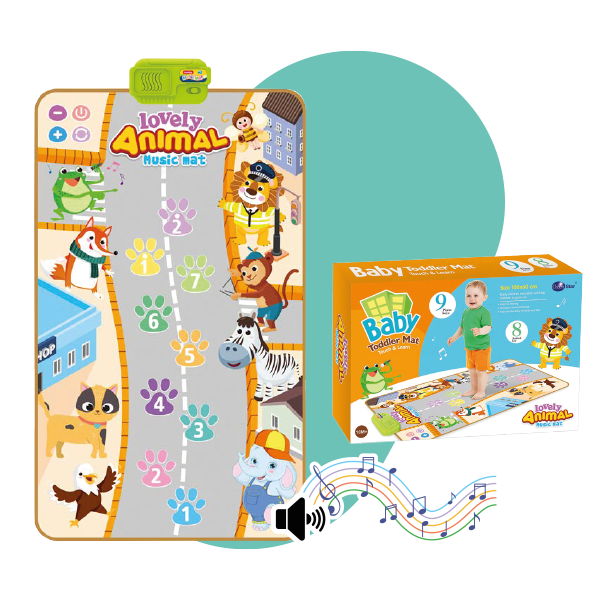 Manta musical de animales, colorida y educativa, ideal para estimular la imaginación y desarrollo musical infantil.