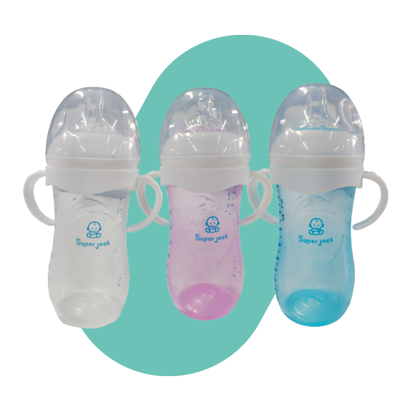 Beberitos coloridos de plástico, con asas, ideales para transición, en colores blanco, rosa y azul. Facilitan el aprendizaje.
