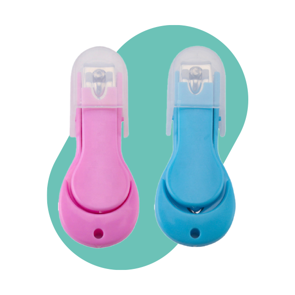 Cortaúñas para bebés, rosa y celeste, seguro y ergonómico con tapa protectora. Ideal para el cuidado infantil.