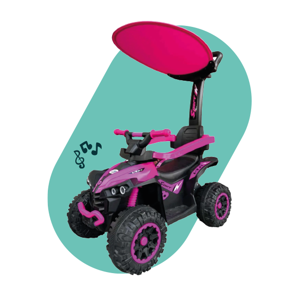 Coche sombrilla musical, color rosa, diseño deportivo, con toldo protector. Ideal para paseos con estilo.