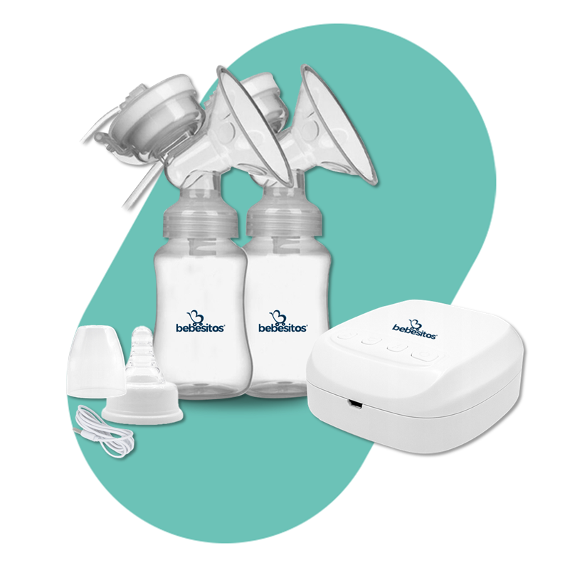 Extractor de leche eléctrico blanco, compacto y práctico, con botellas transparentes. Ideal para mamás modernas.