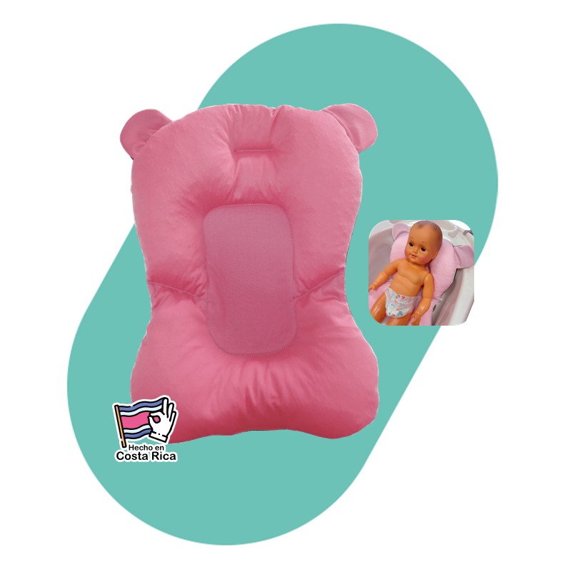 Cojín rosa ultra suave en forma de osito, ideal para baño de tu bebé. Comodidad y calidad aseguradas.