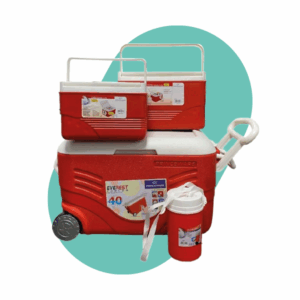 HIELERA KIT4 PIEZAS CON RODINES ROJA